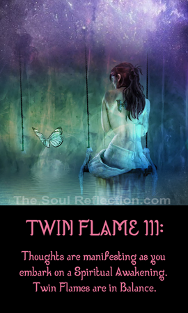 111 - Thoughts are manifesting as you embark on your Spiritual Awakening. Twin Flames are in balance.